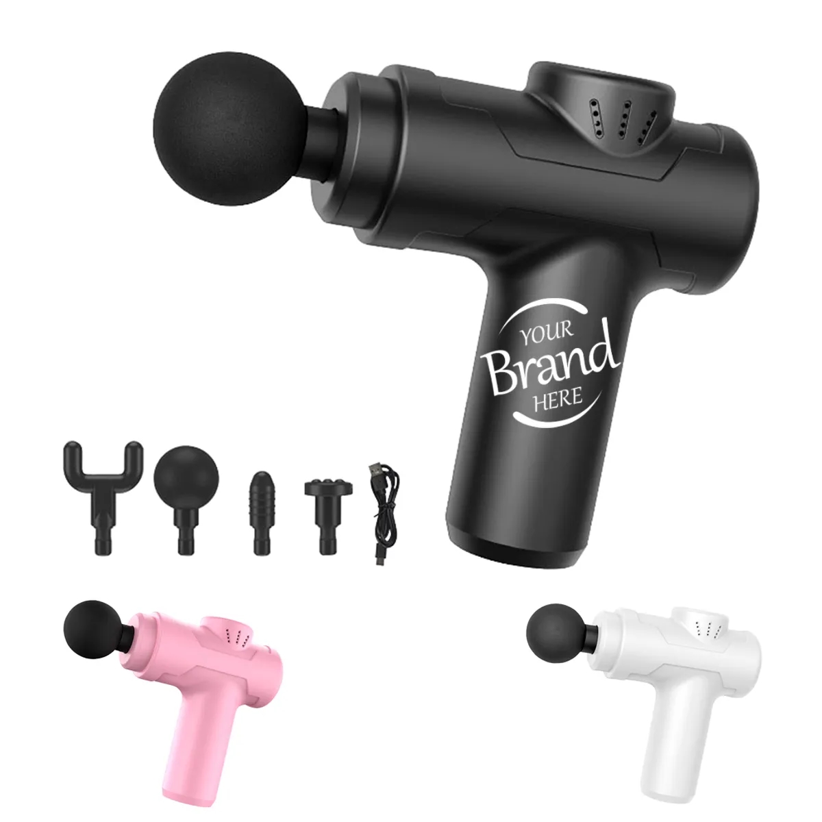 Made of ABS plastic material,our muscle massage gun adopts advanced technology to provide deep muscle massage with high vibration frequency, helping you quickly relieve muscle fatigue and soreness. Our massage gun is small and light, easy to carry and can be put in your bag. You can enjoy the soothing effect of massage anytime, anywhere.The portable rechargeable massage gun uses a large-capacity battery and will help you in relieving fatigue after sports and workout, which also suits for sedentary and postoperative recovery.Measured 4.92"*5.7".Pink,black and white colors for your choice. Customize your logo or brand name on the front to boost your brand awareness! Price for over 300 pcs are base on sea shipment.